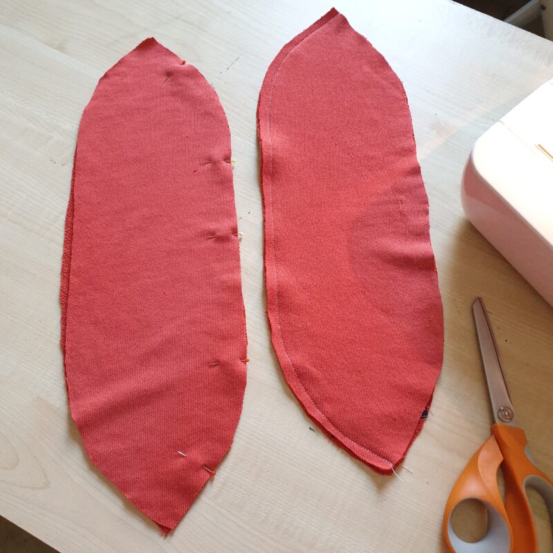– Découper les deux couches de tissu à 1 cm des lignes de couture