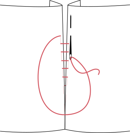 – En piquant dans la valeur de couture avec une aiguille main et un fil, relier les deux sommets