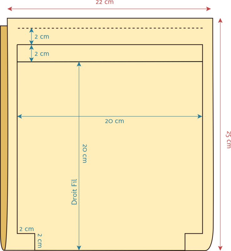 • Variante : couper deux morceaux de 22 x 26 cm et réaliser une couture surfilée de manière à obtenir un morceau de 22 x 50 cm.