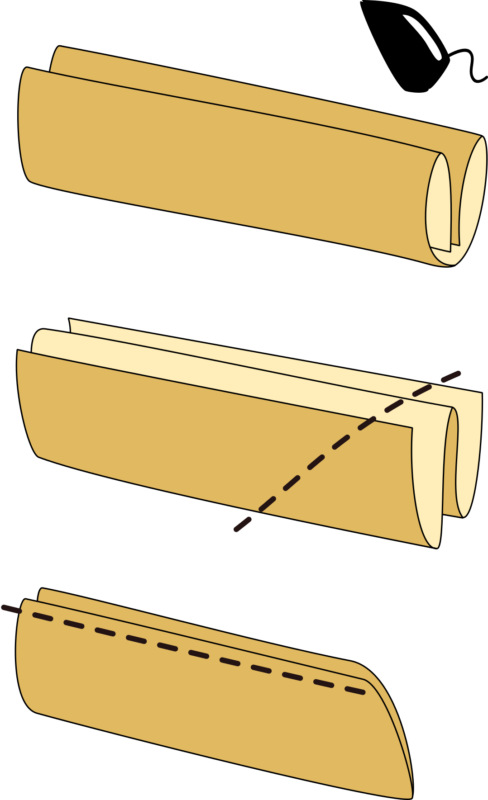 • Replier à nouveau la bande comme du biais et la surpiquer ainsi.