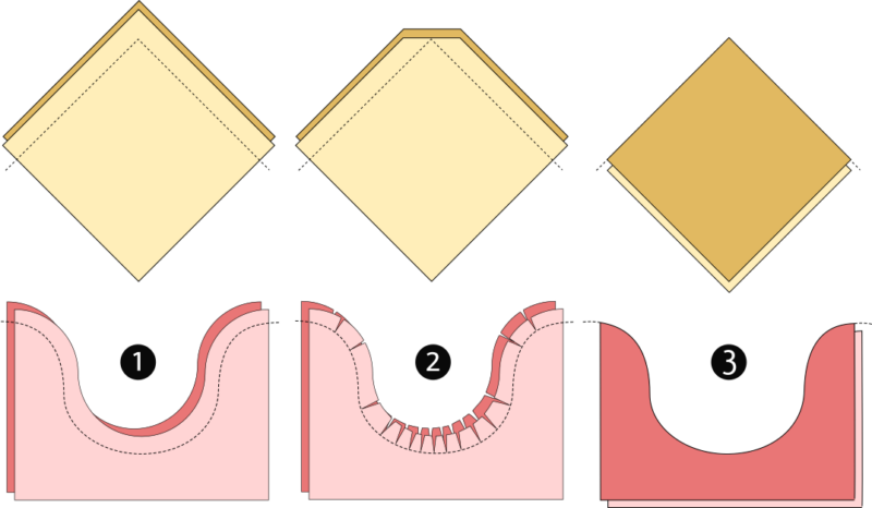 Il est aussi possible de cranter les deux valeurs de couture ensemble. L’avantage par rapport à la technique précédente étant le gain de temps.