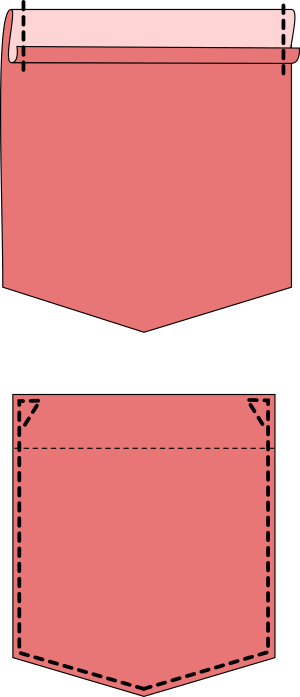 - Appliquer la poche sur le vêtement par une surpiqûre simple ou double. Veiller à renforcer les bords de l’Ouverture de Poche.