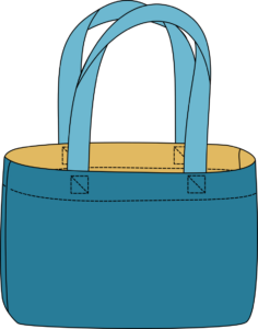 Réaliser une piqûre en rectangle ou en croix au niveau de l’insertion des anses pour plus de solidité.Retourner le sac par l’ouverture laissée dans la doublure par un point invisible à la main.