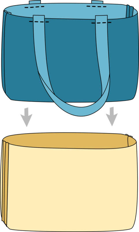 • L’extérieur du sac et la doublure vont être d’abord assemblé.e.s indépendamment l’un.e de l’autre. Iels fusionneront lors de la finition de l’ouverture du sac.