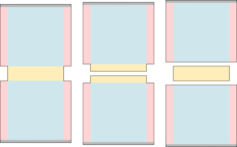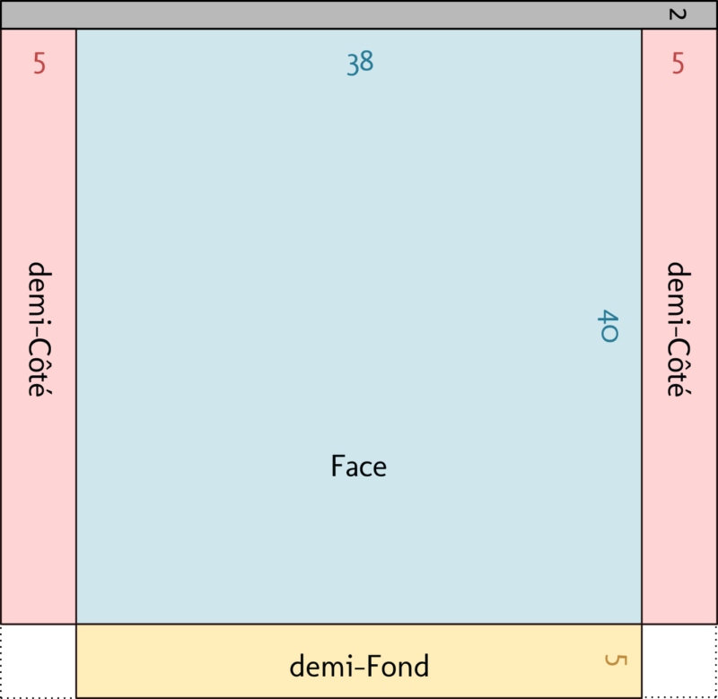 • Dessiner les demi-Côtés (en rose sur le dessin), de part et d’autre de la Face. Leur largeur doit être la même que celle du demi-Fond.