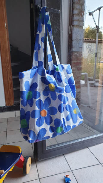 Un grand sac, nommé BICHETTE, facile à réaliser, réversible à souhait, à trimbaler partout, de l’école au boulot, en passant par la plage ou le marché.