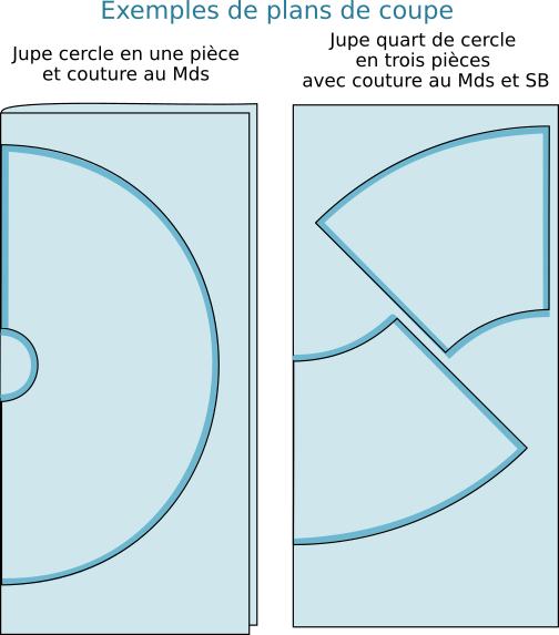 - Selon la quantité de tissu et le résultat souhaité, on va choisir une jupe dont le patron est un cercle entier, un demi, un quart ou un tiers.