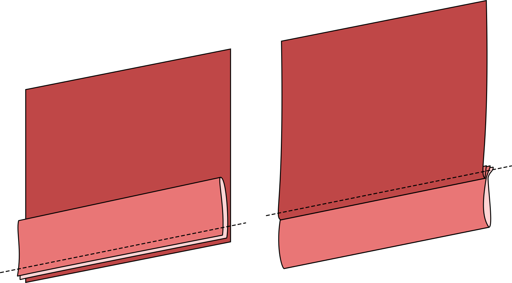 – les parmentures (qui se renversent à plat sur l’envers du vêtement) (dites aussi enformes)