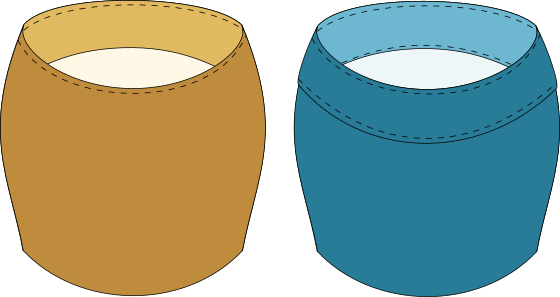 a. Les parties intérieur et extérieur sont coupées distinctement. Elles sont cousues -o-/-o- ensemble sur le haut. Ensuite la partie intérieure est assemblée -o- sur l’envers du vêtement. La partie extérieur est ensuite rabattue sur l’endroit, avec sa VS rentrée et elle est surpiquée ainsi.