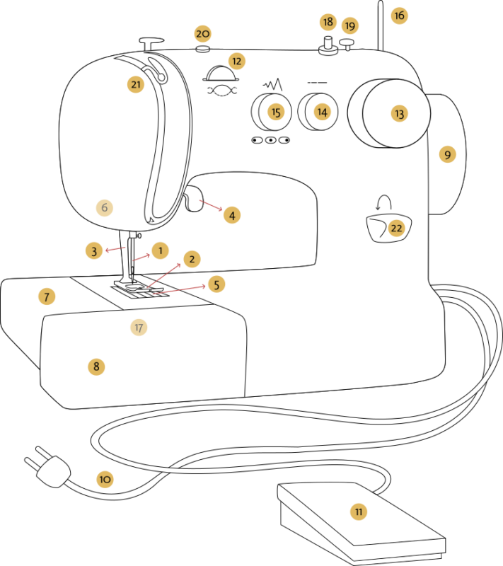Dans cet article, on examine la machine à coudre : de quoi elle se compose, comment elle fonctionne, comment l’enfiler, quels réglages sont possibles, quels aiguilles et pieds presseurs on peut mettre dessus, …