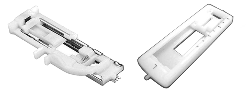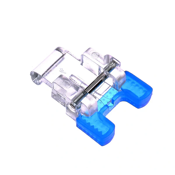 Également appelé demi-pied, ce pied permet de coudre le long d’une tirette ou d’une épaisseur du même genre.