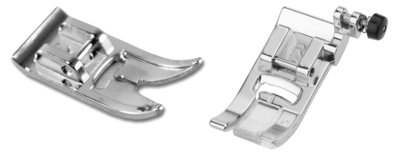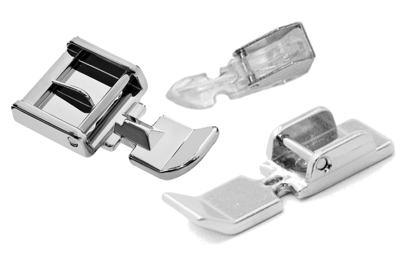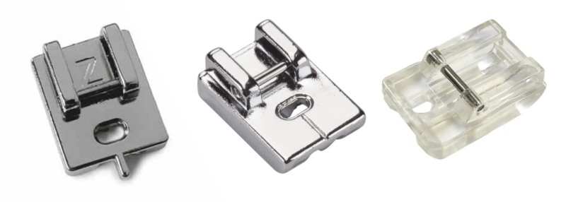 Le pied pour broderie libre, le pied teflon, le pied double entraînement, pied pour surjet, pied ourleur, pied à biais, …