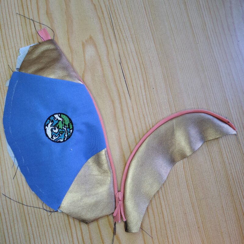 - Mettre la face avant extérieur à plat et endroit contre endroit avec la face arrière extérieur, en veillant à ce que la tirette soit bien plate.